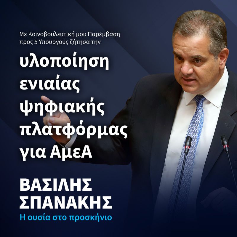 Με Κοινοβουλευτική του Παρέμβαση προς 5 Υπουργούς, ο Βουλευτής του Νοτίου Τομέα Αθηνών Βασίλης – Πέτρος Σπανάκης ζητά την υλοποίηση ενιαίας ψηφιακής πλατφόρμας, η οποία θα διευκολύνει σε μεγάλο βαθμό τα Άτομα με Αναπηρία στη διεκπεραίωση […]