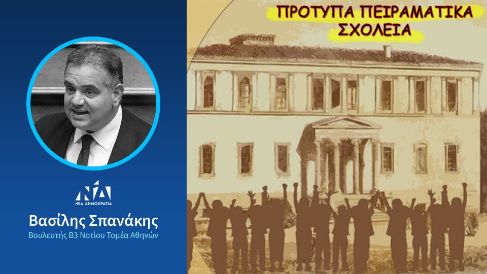 Τις προτάσεις του για τη δημιουργία Πρότυπων και Πειραματικών Σχολείων σε κάθε Δήμο του Νότιου Τομέα της Αθήνας, ανέπτυξε ο Βουλευτής του Νοτίου Τομέα Αθηνών Βασίλης – Πέτρος Σπανάκης, μιλώντας την Τετάρτη 10 Ιουνίου στην Ολομέλεια της Βουλής στο πλαίσιο της συζήτησης του νομοσχεδίου του Υπουργείου Παιδείας & Θρησκευμάτων.